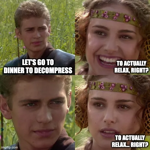 i went to decompress after 16 intense days. You know those dinners where everyone’s supposed to relax but you end up talking shop anyway? Yeah, that.